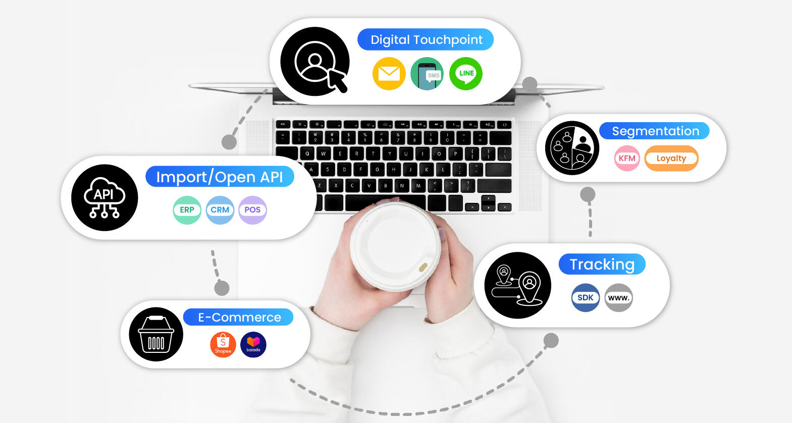 ไม่ว่าจะเป็น เว็บไซต์, LINE, หรือระบบหน้าร้าน (POS) รวมถึงระบบสมาชิกที่คุณเลือกใช้ ให้ทั้งหมดทำงานร่วมกันได้อย่างราบรื่น