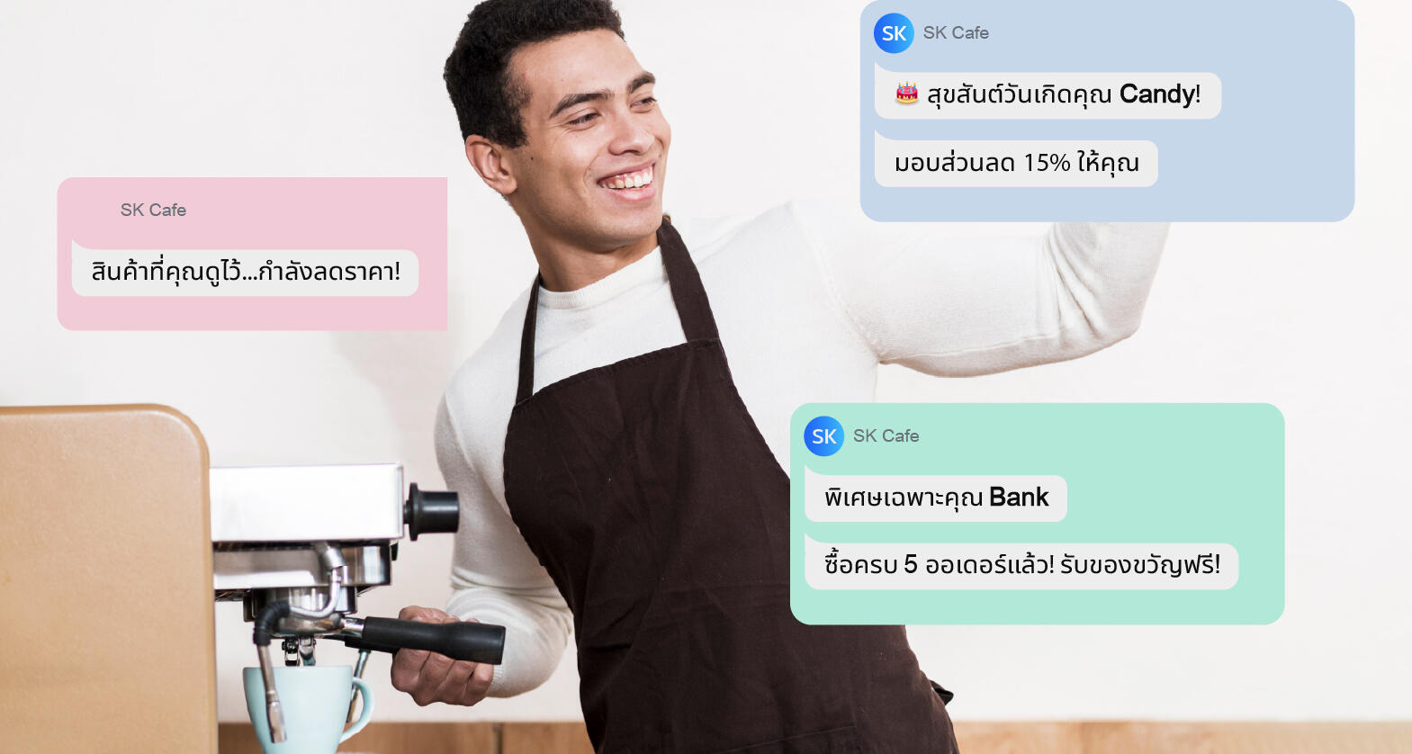 ตั้งค่าส่งข้อความหรือโปรโมชั่นอัตโนมัติได้ง่ายๆ เช่น ข้อความต้อนรับลูกค้าใหม่, โปรโมชั่นวันเกิด, หรือส่ง SMS ตามลูกค้าที่กำลังจะขาดการติดต่อ