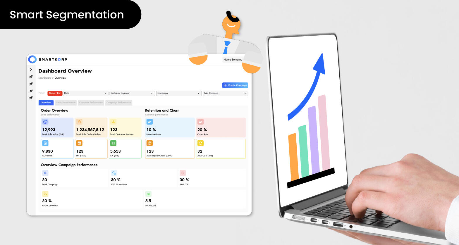 ใช้ SmartKorp เพื่อดูข้อมูลเชิงลึก แบ่งกลุ่มลูกค้า และสร้างแคมเปญการตลาดแบบอัตโนมัติ